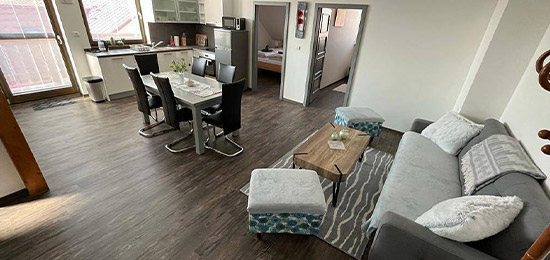 Nabízíme dva jedinečné apartmány – jeden rustikální a útulný, druhý moderní a hravý – které dohromady pojmou až 8 osob. Jsou ideální pro rodiny i přátele a navrženy s důrazem na detail, pohodlí a atmosféru. Každý pobyt u nás je zážitkem, který spojuje klid Hustopečí, sklenku vína a chvíle, na které budete rádi vzpomínat.
